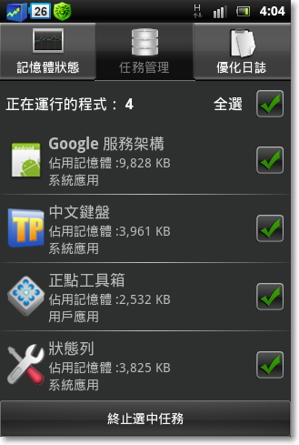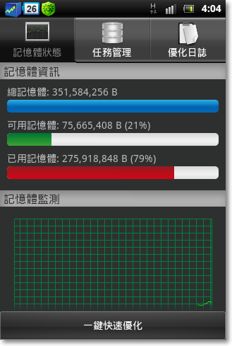 這是一個方便管理手機釋放內建記憶體的好工具,Memory Booster (內存加速器),就如同我們一般常用的電腦一般,有時須要整理記憶體的空間,讓我們的機子能有較好的效能。
